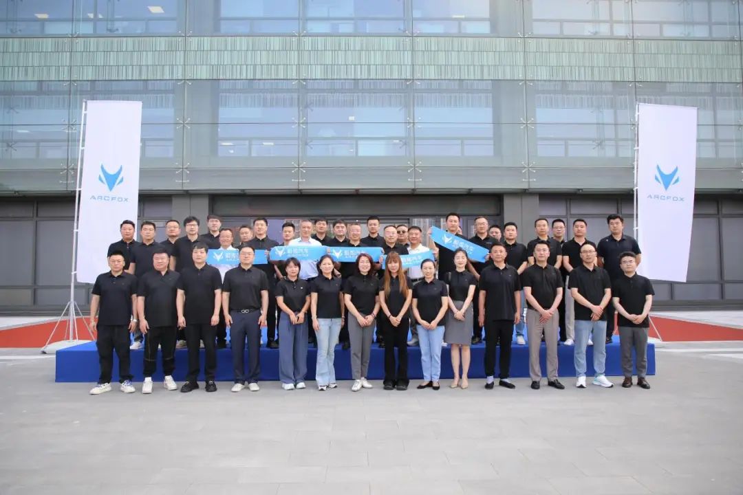 当车队抵达蓝谷,早已迎候多时的北汽新能源党委书记、董事长张国富,北汽新能源党委副书记、总司理刘观桥,北汽新能源用户运营中心 (销售公司) 副总司理乔心昱,亲自为贵宾拉开车门,以最高礼遇致敬与极狐偕行在跃升之路上的亲密同伴和战友,这个态度和这份至心背后,是北汽新能源深刻的客户意识和共赢的价值观,经销商们看到了,也收到了 。
